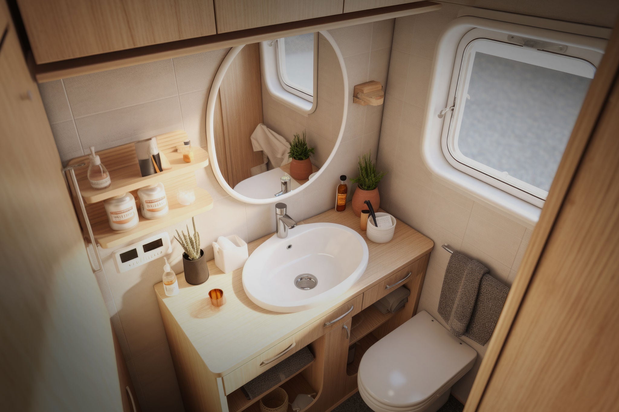 Webasto recommends hybrid heating systems to quickly provide sufficient heat for heating and hot water in camping vehicles. These include a diesel-powered Webasto air heater and a Whale gas or gas-electric boiler. This reduces the gas requirement when traveling and thus also valuable weight. Both devices can be installed both underfloor and in the vehicle.